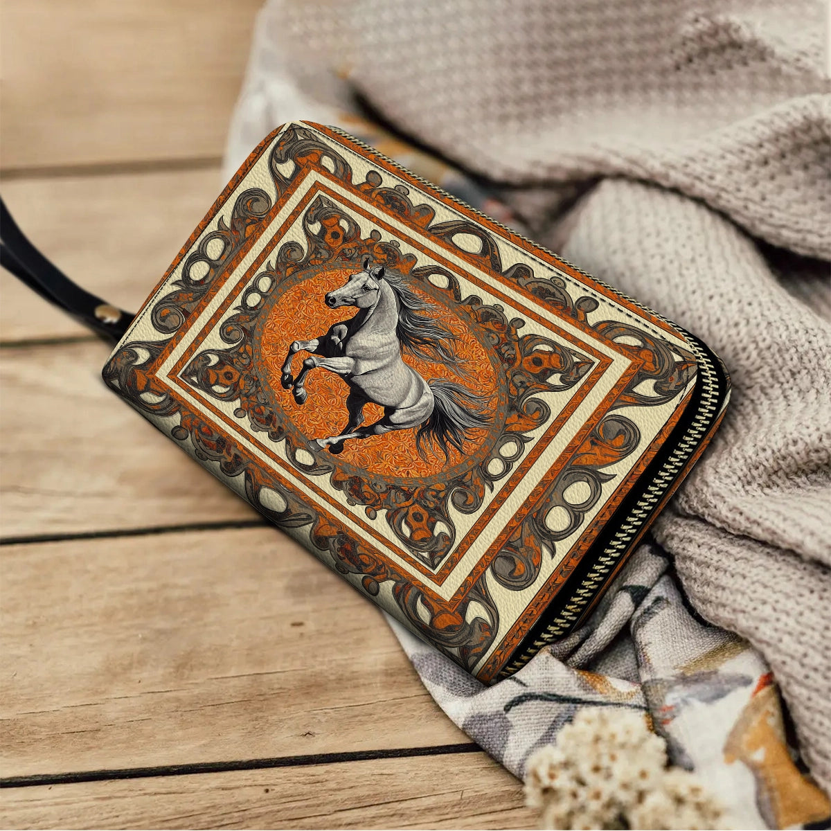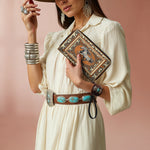A silver steed rears within a frame of swirling baroque filigree — bold, untamed, and noble. This design pays homage to the energy of the West: where freedom charges forward, framed by the richness of tradition and the fire of self-expression. It’s a striking dance of heritage and spirit, made to turn heads and carry stories.