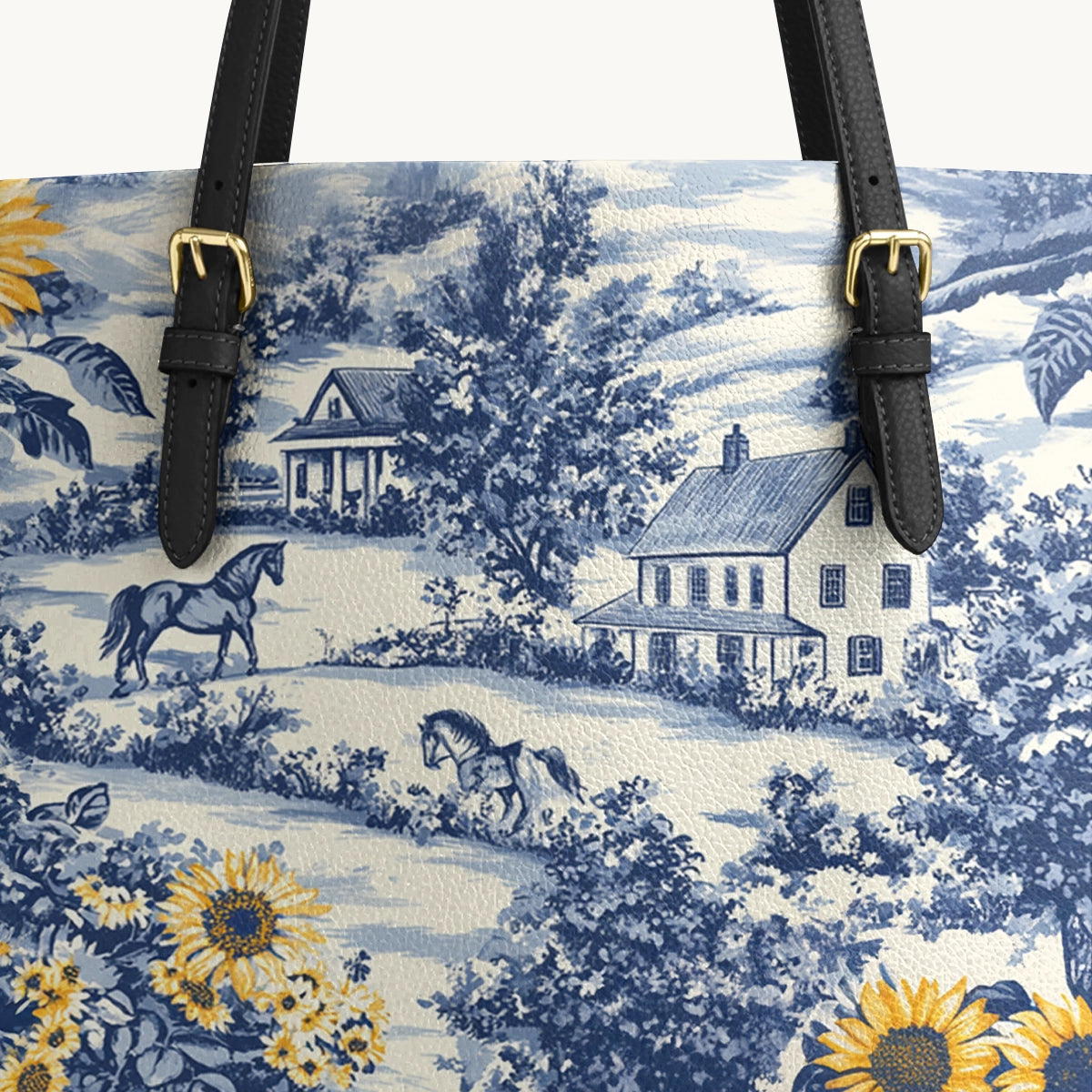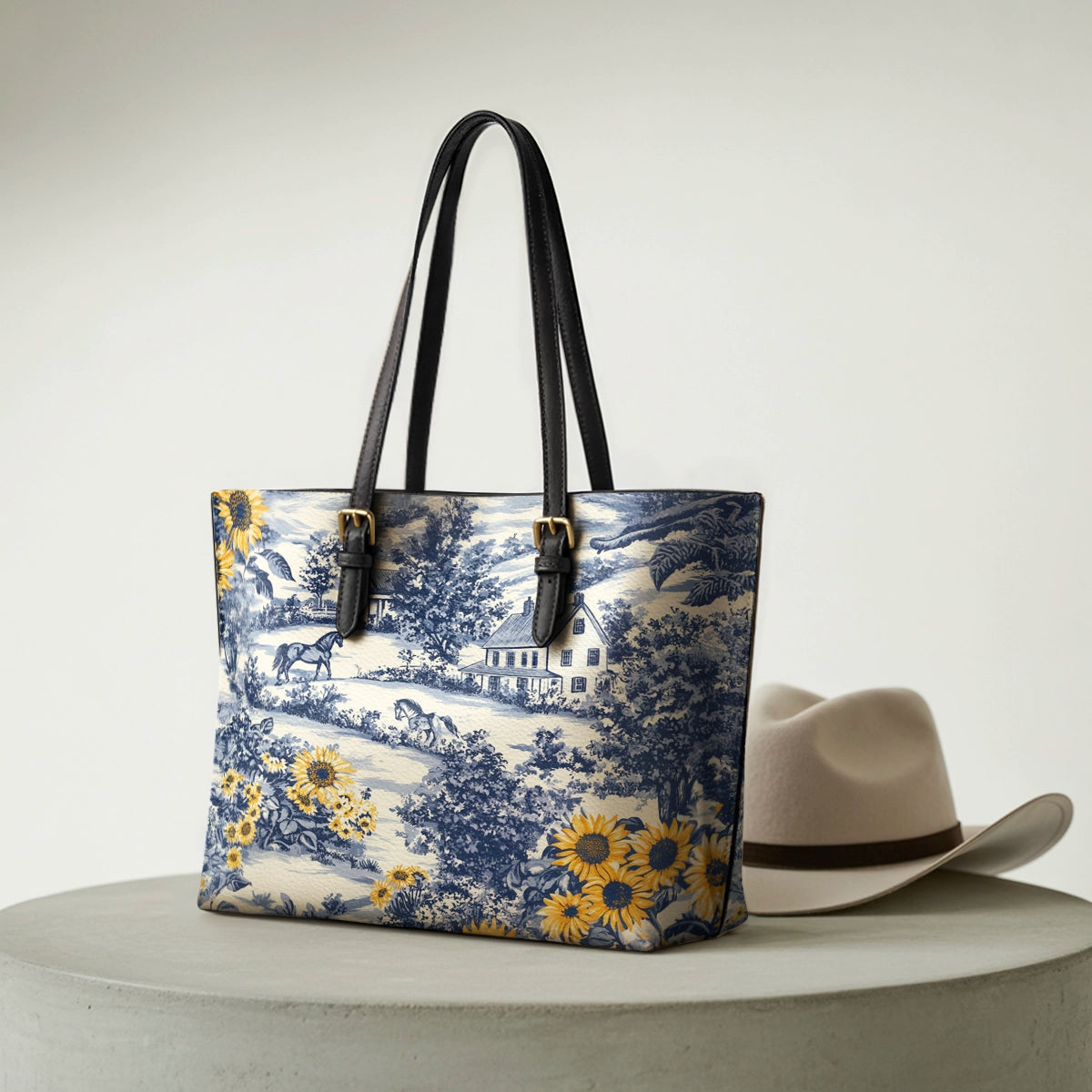 Westavelle Toile Sunflower Prairie Leather Tote Bag