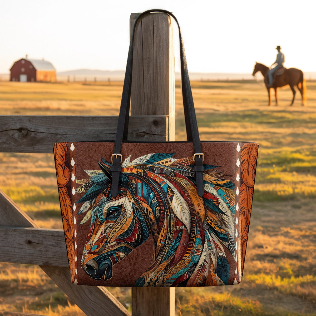 Westavelle Tribal Horse Majesty Leather Tote Bag