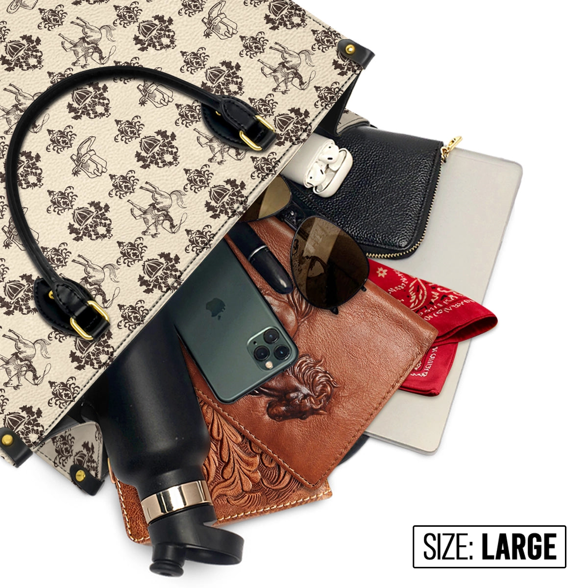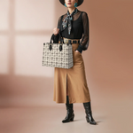 SMALL (9.8" x 7.5" x 4.5"): Don’t be fooled by its compact size — this elegant silhouette fits your daily must-haves: phone, wallet, airpods, sunglasses, a small clutch, and lipstick. Perfect for light travel, casual outings, or a polished dinner look